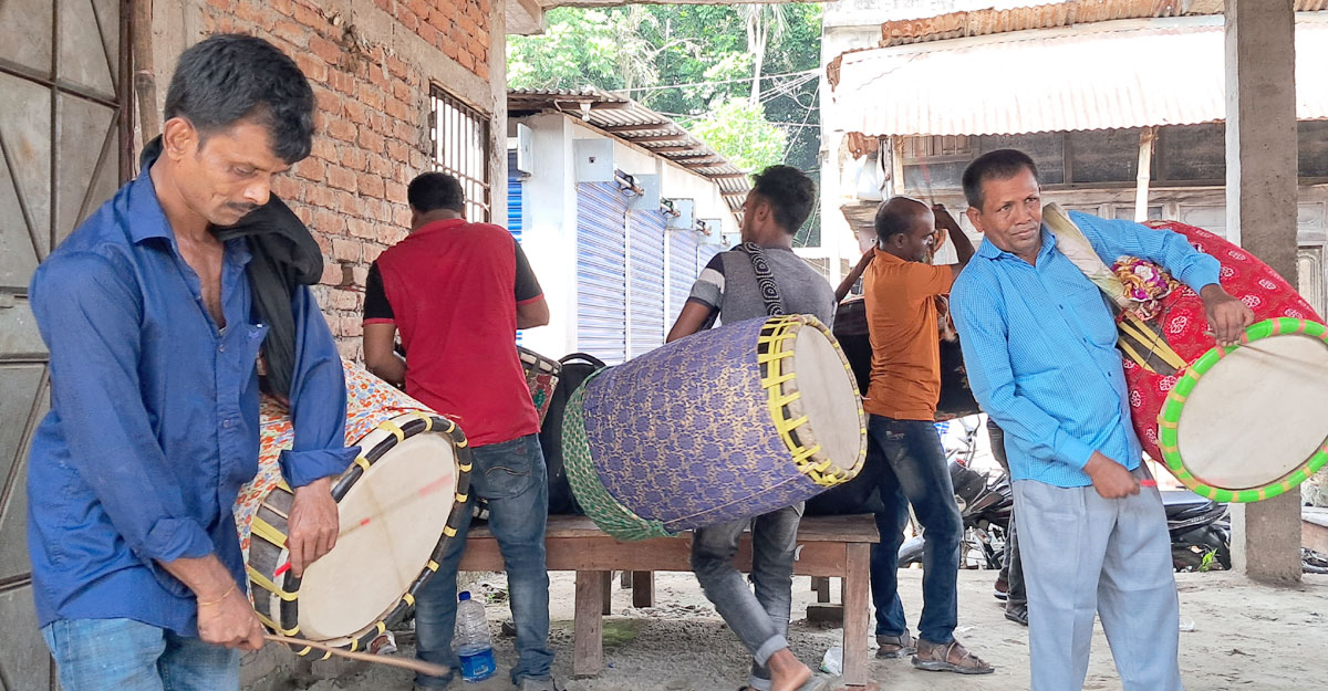 সুনামগঞ্জ থেকে বাদ্যদল নিয়ে এসেছেন আব্দুল মালেক খান। তিনি জানান, এটা আমাদের ব্যবসা। তাই মুসলিম হয়েও মণ্ডপে বাদ্য বাজিয়ে জীবন চালায়।