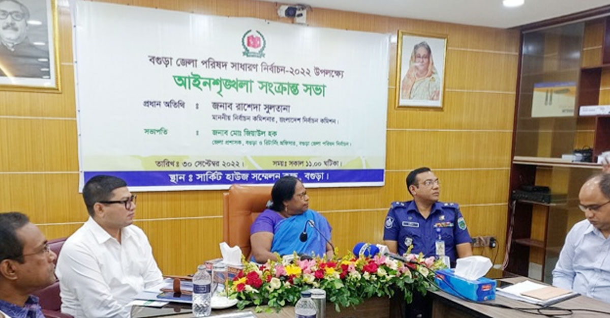 বগুড়ার জেলা প্রশাসক ও রিটার্নিং কর্মকর্তা জিয়াউল হকের সভাপতিত্বে সভায় পুলিশ সুপার সুদীপ চক্রবর্ত্তী, জেলা পরিষদ নির্বাচনের প্রার্থীরাসহ সরকারি বিভিন্ন দপ্তরের কর্মকর্তাবৃন্দ উপস্থিত ছিলেন।