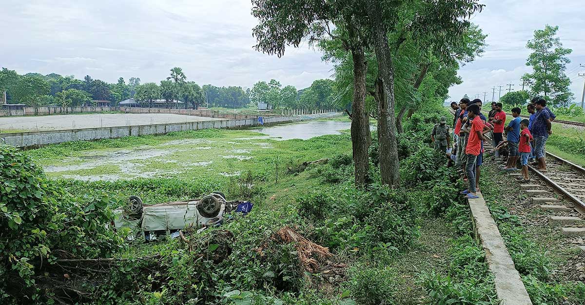 কালীগঞ্জে ট্রেনের ধাক্কায় প্রাইভেটকারের আরোহী নিহত, চালক আহত