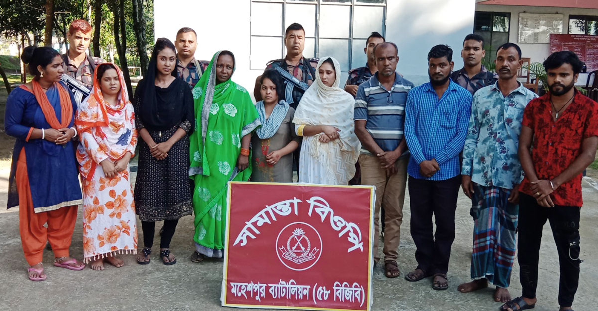 ৫৮ বিজিবির সহকারী পরিচালক মোহাম্মদ সাইফুল ইসলাম জানান, গোপন সংবাদের ভিত্তিতে মহেশপুরে সোনাইডাংগা গ্রামের প্রাইমারি স্কুলের সামনে থেকে চারজন পুরুষ, পাঁচজন নারী ও চারজন শিশুসহ মোট ১৩ জনকে আটক করে বিজিবি। তারা প্রত্যেকেই বিনা পাসপোর্টে বাংলাদেশ থেকে ভারত যাচ্ছিল।