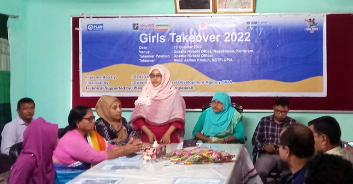 বৃহস্পতিবার (১৩ অক্টোবর) দুপুরে উপজেলা নির্বাহী অফিসারের কার্যালয়ে প্লান ইন্টারন্যাশনাল বাংলাদেশের কারিগরি সহযোগিতায় সিডা এর অর্থায়নে পরিচালিত সলিডারিটির ওয়াই-মুভস প্রজেক্ট এ গার্লস টেকওভার কর্মসূচির উদ্যোগ গ্রহণ করে।