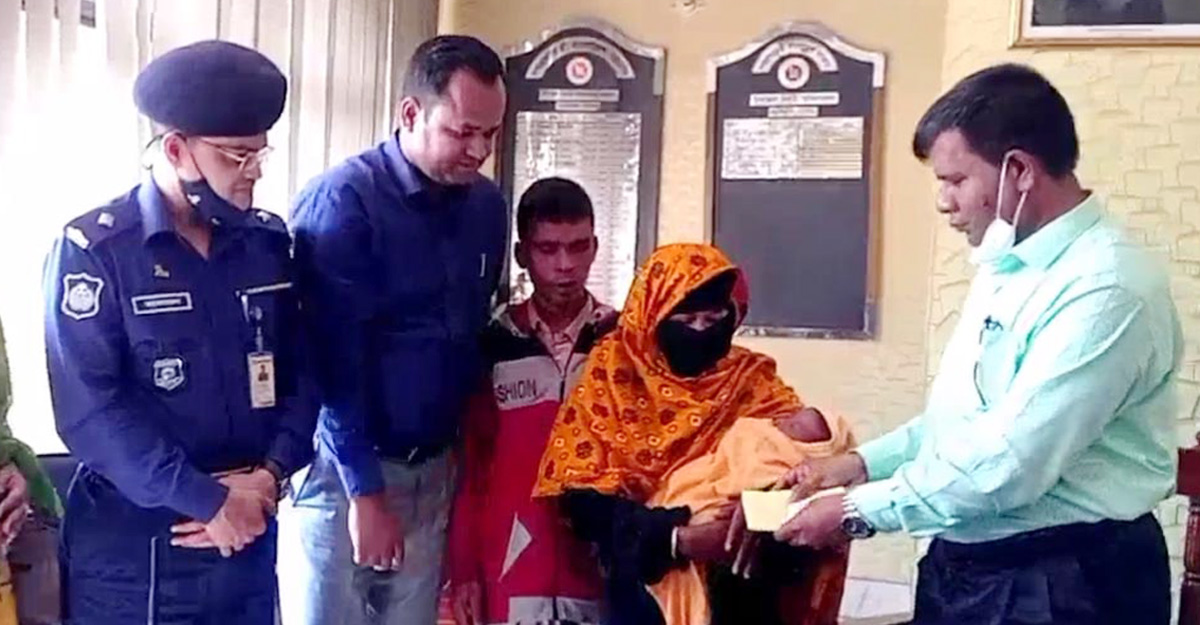 শিশুটিকে তার মা ফুলজান বেগমের কোলে তুলে দেন ডিসি শাহরিয়াজ পিএএ