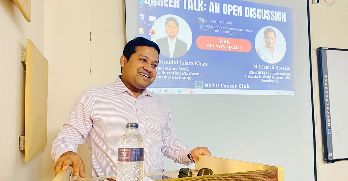 গতকাল বুধবার (১৯ অক্টোবর) বিকেলে বিশ্ববিদ্যালয়ের ভিডিও কনফারেন্স রুমে ক্যারিয়ার ক্লাবের আয়োজনে নিজের জীবনের গল্প শোনাতে এসে এভাবেই কথাগুলো বলেছেন ৩৩তম বিসিএস এর প্রশাসন ক্যাডার ও সোনাইমুড়ী উপজেলার নির্বাহী অফিসার মো. ইসমাইল হোসেন।