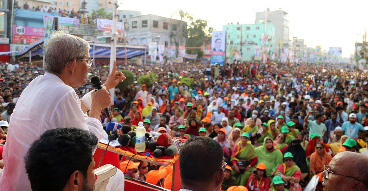 প্রধানমন্ত্রী শেখ হাসিনাকে উদ্দেশ করে মির্জা ফখরুল বলেন, আপনি অবিলম্বে পদত্যাগ করুন। কারণ আপনারা বৈধ নন, আপনারা জনগণের ভোটে আসেন নাই। সংসদ বিলুপ্ত করুন। সংসদ বিলুপ্ত করে নিরপেক্ষ তত্ত্বাবধায়ক সরকার দিন। কারণ এই দেশে আপনাদের অধীনে কোনো নির্বাচন সুষ্ঠু হতে পারে না। সেই কারণেই নিরপেক্ষ তত্ত্বাবধায়ক সরকার ছাড়া অন্য কোনো ব্যবস্থা জনগণ মেনে নেবে না।