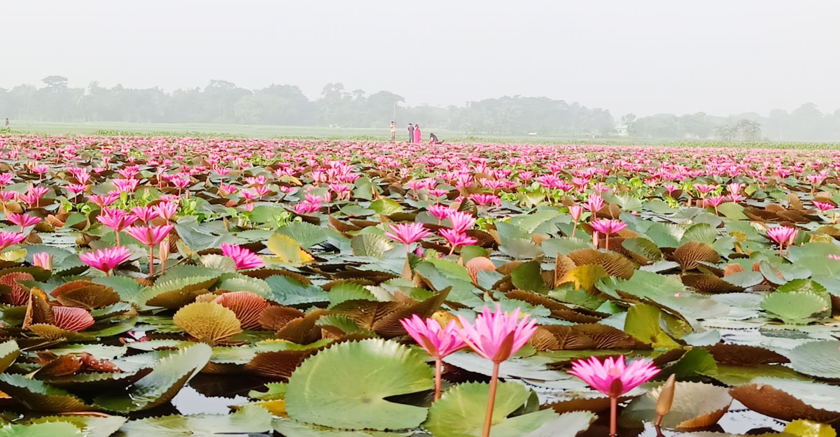 চেচুয়া বিলজুড়ে লাল শাপলার গালিচা