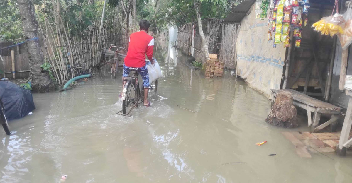 খুরশিদ বেগম নামের অপর এক নারী বলেন, স্বামী নেই, নিজে দিনমজুরের কাজ করে খাই। এমনি সময় আয় না থাকলে খাওয়া বন্ধ থাকে। আজকে উপজেলা প্রশাসন থেকে চাল-ডাল দেওয়া হলেও খাওয়া বন্ধ। রান্নার উপায় নেই। রান্নাঘর, শোবার ঘরে পানি উঠেছে। কোনো রকম শুকনো মুড়ি খেয়ে আছি।