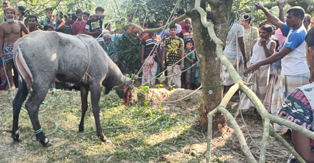 ধাওয়া করে আমবাগান থেকে নীলগাই ধরল গ্রামবাসী