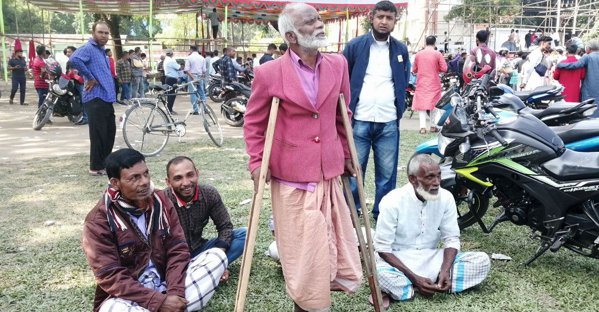 এক পা নেই, তবুও বিএনপির সমাবেশে হাজির কৃষক আজিজার