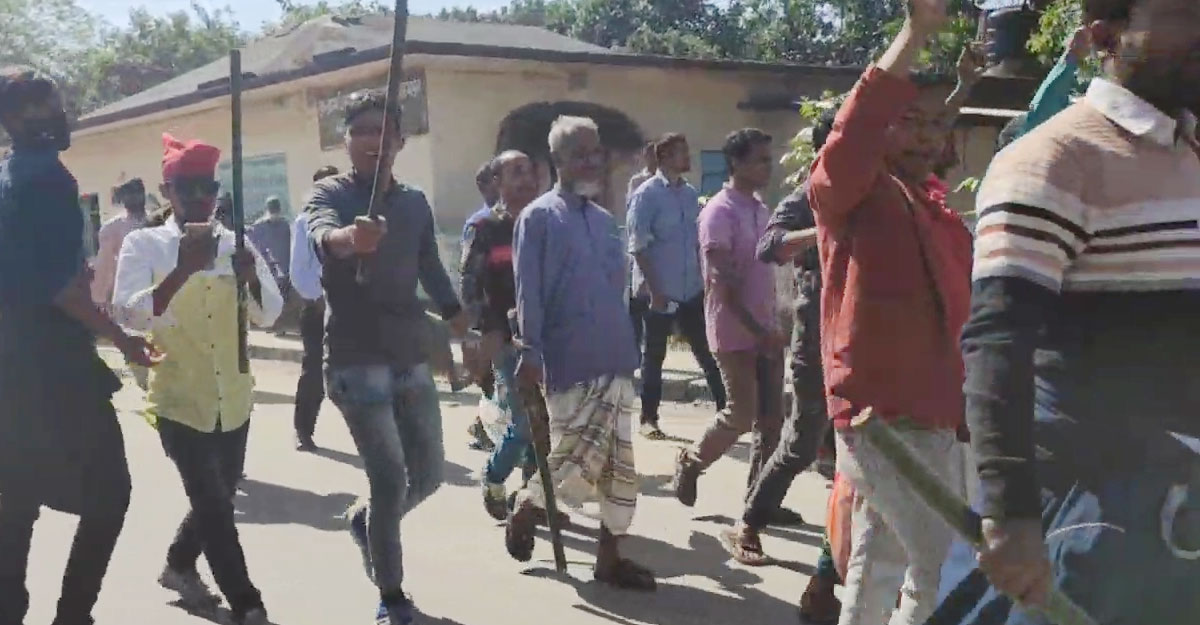 লাঠি হাতে গণসমাবেশে বিএনপির নেতা-কর্মীরা