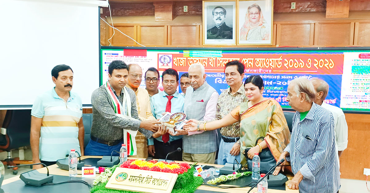 বিভিন্ন ক্ষেত্রে প্রশংসনীয় ও গৌরবোজ্জ্বল অবদানের স্বীকৃতি স্বরূপ দেশের ১৫ গুণীজনকে খাজা উসমান খাঁ সিলভার পেন অ্যাওয়ার্ড দেওয়া হয়েছে। রোববার (৩০ অক্টোবর) দুপুরে ময়মনসিংহ সিটি করপোরেশনের শহীদ শাহাবুদ্দিন মিলনায়তনে আয়োজিত এক অনুষ্ঠানে গুণীজনদের হাতে ক্রেস্ট ও সনদ তুলে দেন জেলা আওয়ামী লীগের সভাপতি অ্যাডভোকেট জহিরুল হক খোকা।