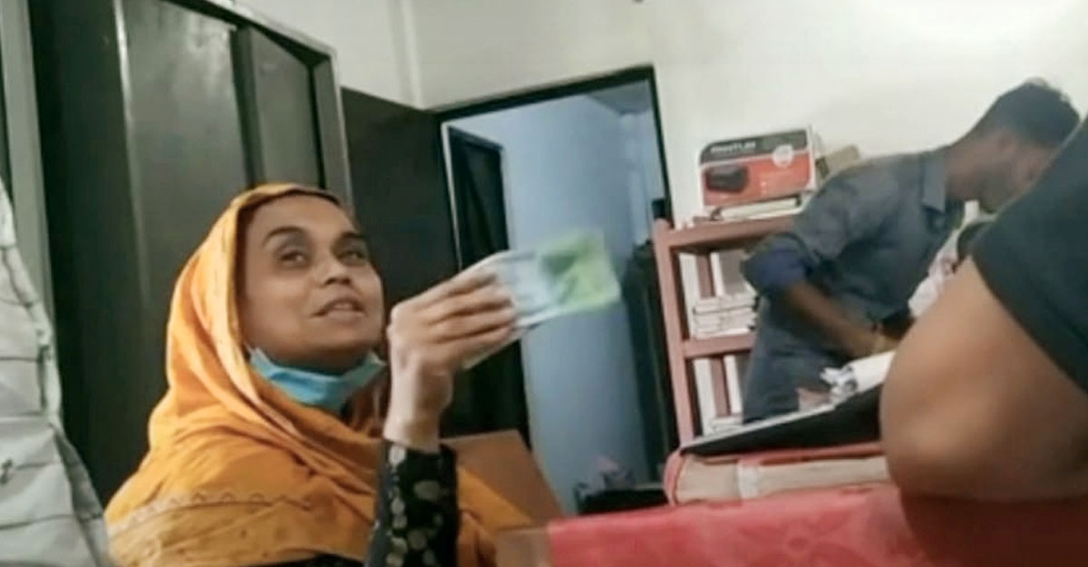 ভিডিওতে দেখা যায়, এক ব্যক্তির সঙ্গে টাকার বিনিময়ে কাজ করে দেওয়ার জন্য দর-কষাকষি করছেন নাছরীন সুলতানা। একপর্যায়ে হাসিমুখে টাকা হাতে নিতে নিতে তাকে বলতে শোনা যায়, ‘আপনি তো আমার চাকরি খাবেন, সামনা-সামনি যা করছেন। আমার চাকরিটা খাওয়ার জন্য আপনি লাগছেন। এই শোনেন, যেটা দেখাইছি ওইটা দিতে হবে, তাহলে আপনি কাজ পেয়ে যাবেন। ভাইঙ্গা ভাইঙ্গা টাকা দিলে এটা অয়না। আমি এইটা রাখলাম। কিন্তু দেওয়া লাগব, ওইটা না দিলে আপনার খারিজ (নামজারি) হবে না।’