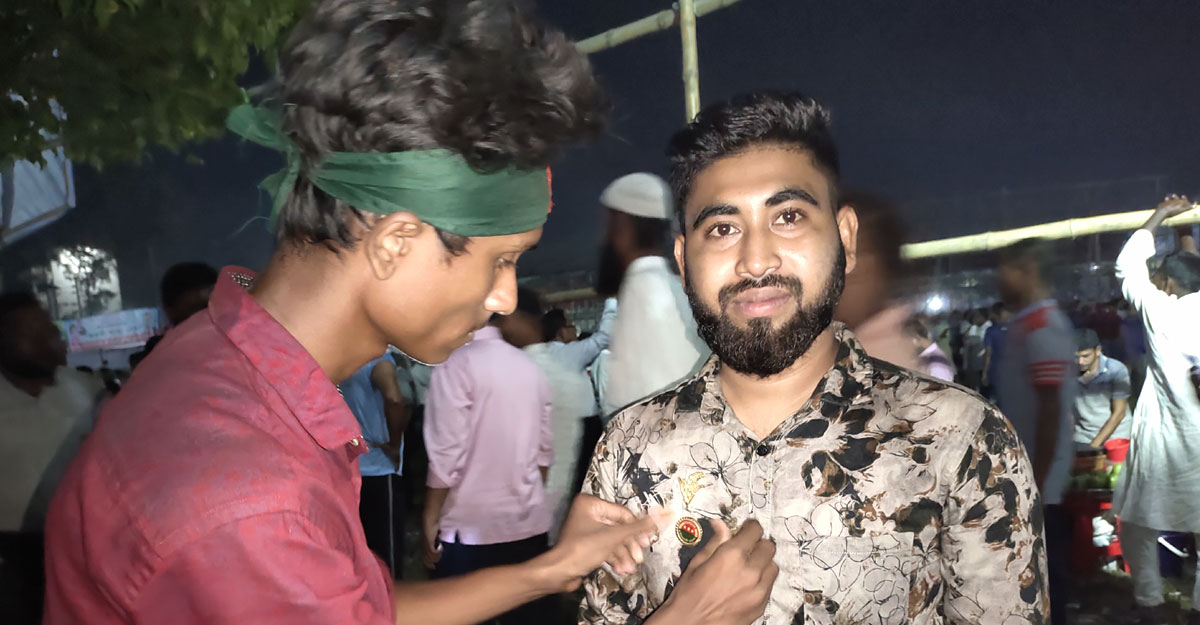 পটুয়াখালীর গলাচিপা থেকে আসা হান্নান বলেন, এই ব্যাজ আমাদের আবেগ ও ভালোবাসা। এই ব্যাজ পরিধান করলে আমাদের ভালো লাগে। আমি ২০ টাকা দিয়ে ৩টা কিনেছি, ব্যাজ পরার ছবি আবার ফেসবুকে দিয়েছি। এই ব্যাজ পরলে সুন্দর দেখায়।