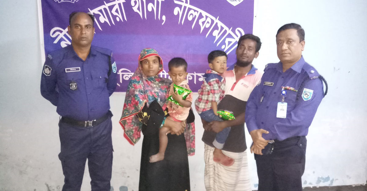 থানা পুলিশ সূত্রে জানা গেছে, আজ রোববার বিকেলে নীলফামারী শহরের চৌরাঙ্গী মোড়ে দুই শিশু পথ হারিয়ে কান্নাকাটি করার সময় স্থানীয়রা সদর থানার পুলিশ পরিদর্শক (তদন্ত) মুক্তারুল আলমকে জানান। পরে তাৎক্ষণিকভাবে সদর থানা পুলিশের একটি টিম ঘটনাস্থলে পৌঁছে শিশুদের উদ্ধার করে থানা হেফাজতে নেয়। পরে ফেসবুকসহ বিভিন্ন মাধ্যমের সহায়তায় শিশুদের বাবা-মা ও নানা-নানির খোঁজ পাওয়া গেলে তাদের কাছে হস্তান্তর করা হয়।