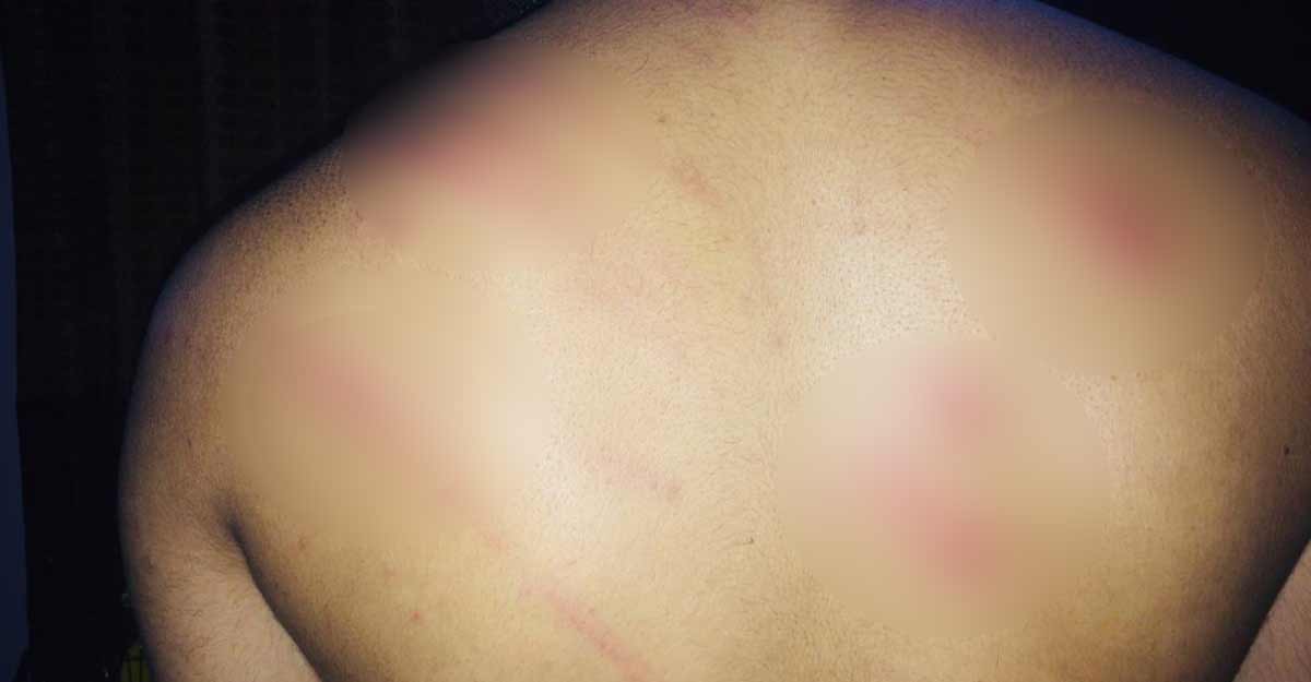 পিঠে, হাতে, আঙুলে রক্ত জমাট বেঁধেছে। শরীরে সব মিলিয়ে এগারোটি আঘাতের চিহ্ন ফুটে উঠেছে। এক আঙুলে জমে গেছে রক্তের জমাট। হাত দিয়ে বেরিয়ে গেছে অনেক রক্তের ফোঁটা। প্রতিটি আঘাতের চিহ্ন স্পষ্টভাবে দেখা যাচ্ছে।
