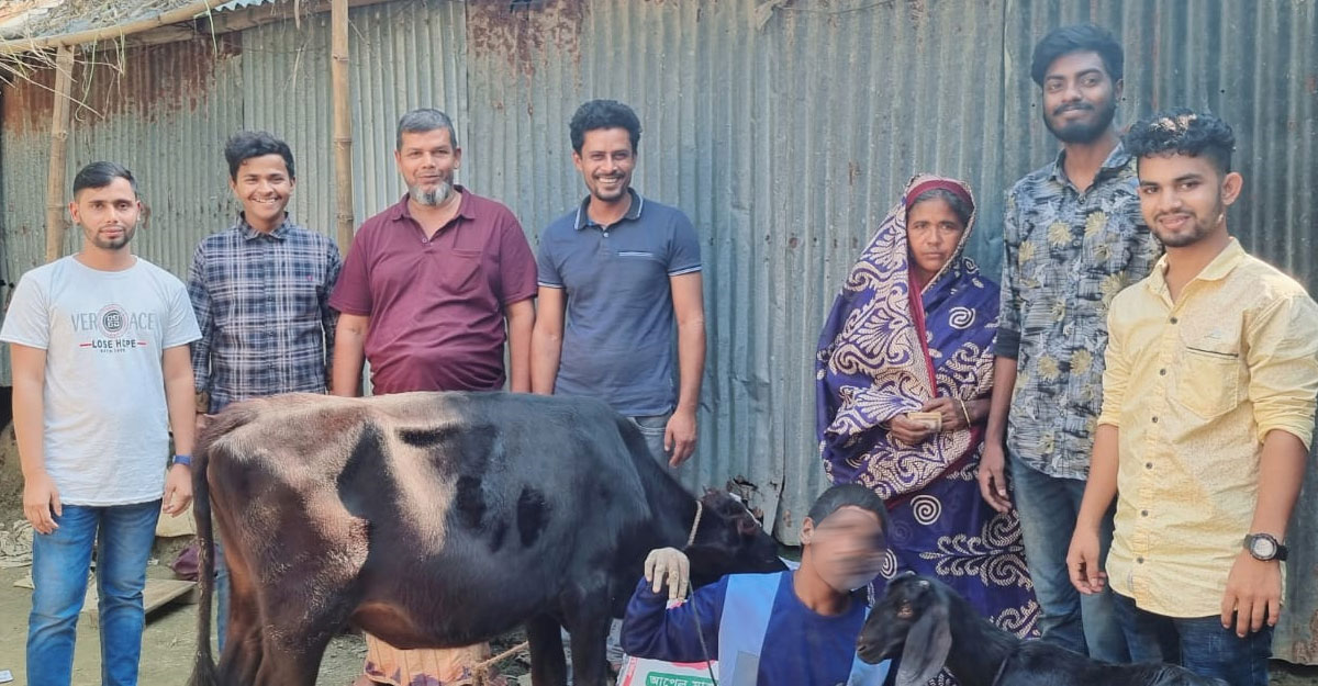 তিনি অসহায় পরিবারটির পাশে দাঁড়ানোর জন্য সামাজিক যোগাযোগ মাধ্যমে একটি স্ট্যাটাস দেন। পরে ফেসবুকের মাধ্যমে বিভিন্নজনের কাছ থেকে ৭৪ হাজার টাকা সংগ্রহ করেন। ওই টাকা দিয়ে একটি গরু, ছাগল, খাদ্যসামগ্রী ও পোশাক কিনে সোমবার (০৭ নভেম্বর) বিকেলে পরিবারটির হাতে তুলে দেন। এ সময় নগদ ১১ হাজার টাকাও তুলে দেওয়া হয়।