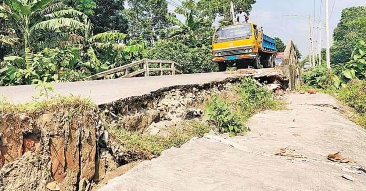 ধসে পড়েছে সড়কের সুরক্ষা দেয়াল ও স্লাব