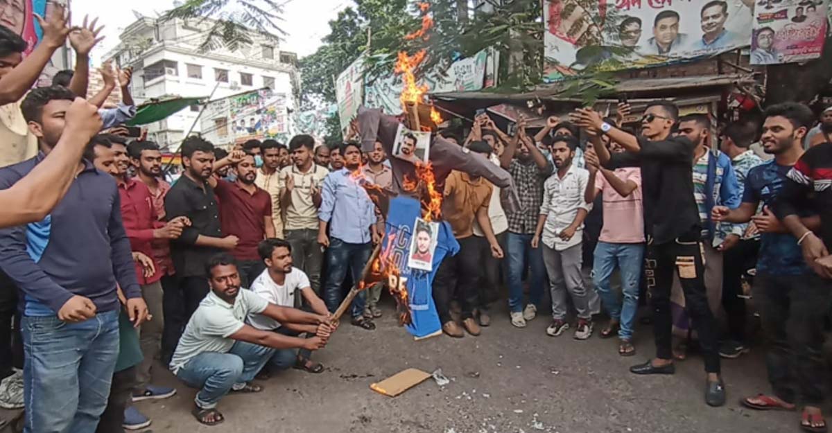 বগুড়ায় ছাত্রলীগের সভাপতি-সম্পাদকের কুশপুত্তলিকা দাহ