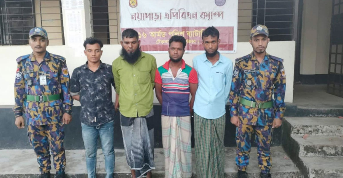 আটককৃতরা হলেন- উখিয়ার বালুখালীর জামতলীস্থ ১৫ নম্বর ক্যাম্পের আব্দুর রশিদ, উখিয়ার কুতুপালং বালুমাঠ ক্যাম্পের আইয়ুব, উখিয়ার শফিউল্লাহ কাটা ক্যাম্পের আমির হোসেন এবং স্থানীয় টেকনাফ সদর ইউনিয়নের গোদার বিল এলাকার রবিউল আলম।