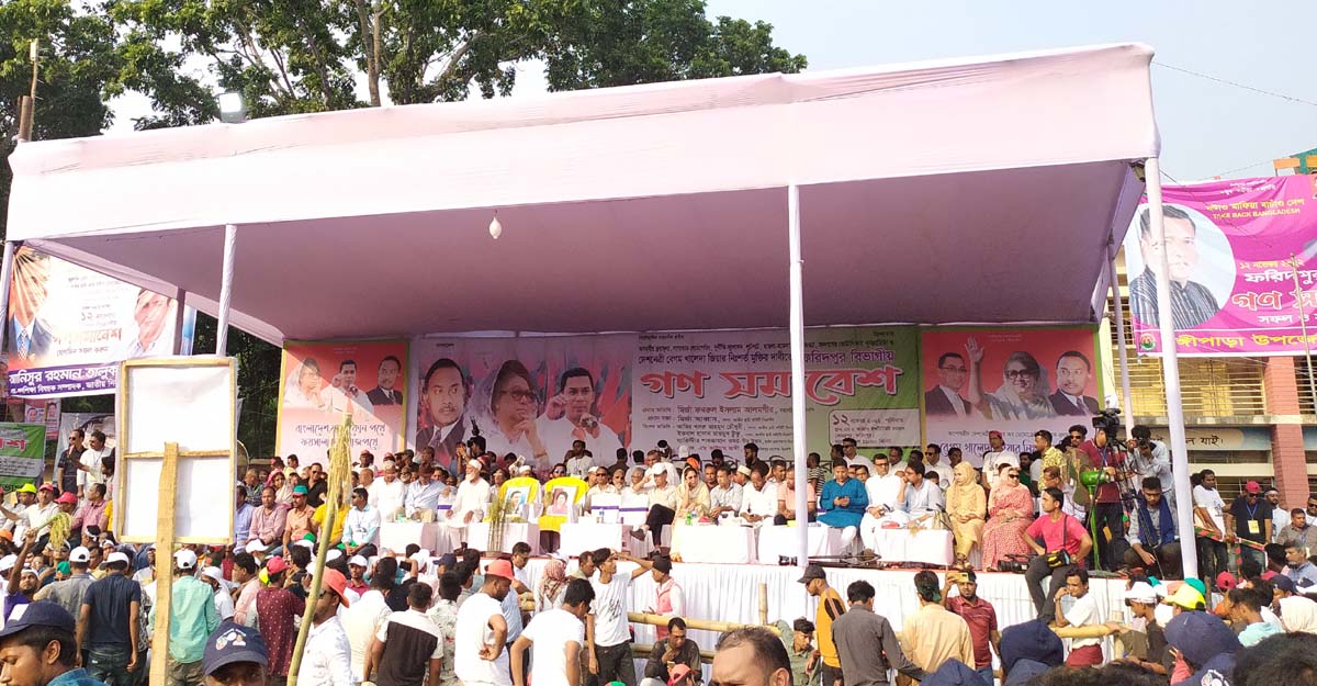 শনিবার (১২ নভেম্বর) বেলা ১১টার দিকে জেলা শহরের কোমরপুরের আব্দুল আজিজ ইনস্টিটিউশন মাঠে কোরআন তেলাওয়াতের মাধ্যমে শুরু হয় এই গণসমাবেশ। দুপুর পৌনে ২টার দিকে মঞ্চে ওঠেন মির্জা ফখরুল ইসলাম আলমগীর ও স্থায়ী কমিটির সদস্য আমীর খসরু।