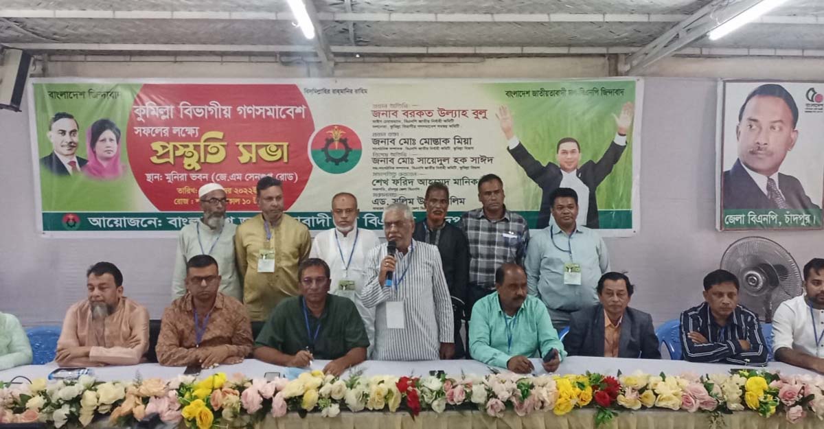 আগামী ২৬ নভেম্বর কুমিল্লা বিভাগীয় গণসমাবেশ সফল করার লক্ষ্যে শনিবার (১২ নভেম্বর) দুপুরে চাঁদপুর জেলা বিএনপির সভাপতি শেখ ফরিদ আহমেদ মানিকের বাসভবনে (মুনিরা ভবন) আয়োজিত জেলা বিএনপির প্রস্তুতি মূলক সভায় প্রধান অতিথির বক্তব্যে তিনি এসব কথা বলেন।