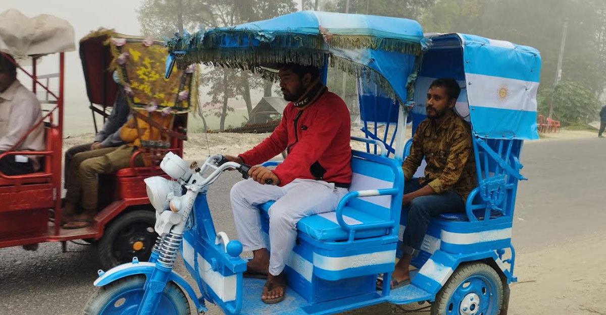 আর্জেন্টিনার পতাকার রংয়ে অটোরিকশা সাজালেন কুড়িগ্রামের আশরাফুল