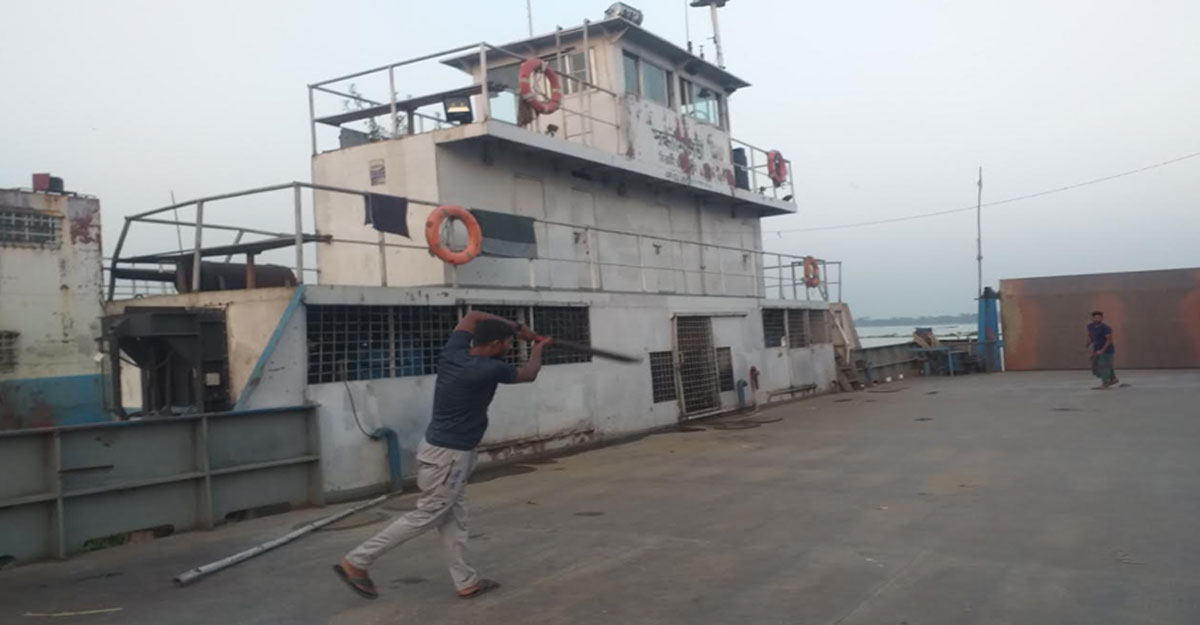 ফেরিতে ক্রিকেট খেলছেন স্টাফরা