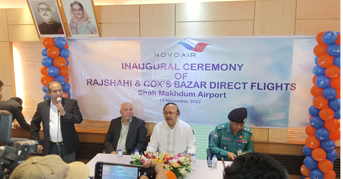 এসময় উপস্থিত ছিলেন নভোএয়ারের ব্যবস্থাপনা পরিচালক মফিজুর রহমান, রাজশাহী চেম্বার অব কমার্স অ্যান্ড ইন্ডাস্ট্রির সভাপতি মাসুদুর রহমান রিংকু প্রমুখ।