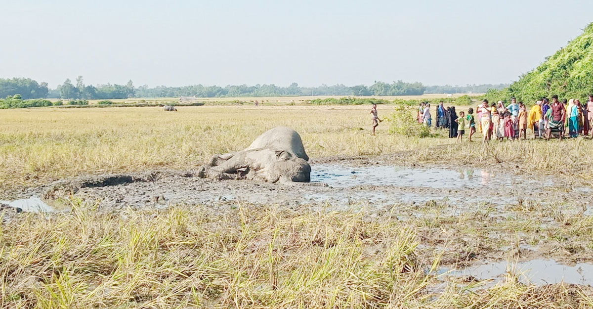 নেত্রকোণায় ধান খেতে এসে বন্য হাতির মৃত্যু