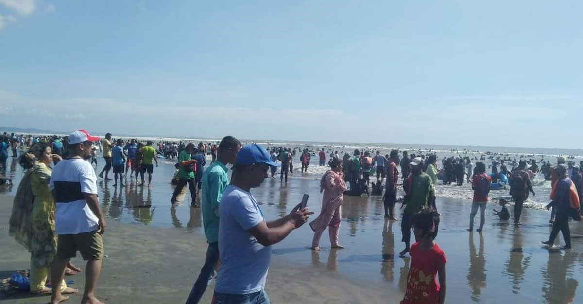 সরেজমিনে দেখা গেছে, সমুদ্র সৈকতের লাবণী, কলাতলী ও সুগন্ধা পয়েন্টে হাজার হাজার পর্যটক ঘুরে বেড়াচ্ছেন। তারা বালিয়াড়িসহ সাগরের নোনা পানিতে আনন্দে মেতে উঠছেন। কেউ ছবি তুলছেন, আবার কেউ নিজেই সেলফিতে মেতে উঠছেন।