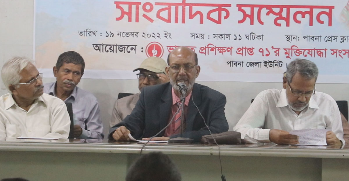 শনিবার (১৯ নভেম্বর) দুপুরে পাবনা প্রেস ক্লাবের ভিআইপি মিলনায়তনে ‘ভারতে সামরিক প্রশিক্ষণপ্রাপ্ত ৭১-এর মুক্তিযোদ্ধা সংসদ পাবনা জেলা ইউনিটের’ ব্যানারে এই সংবাদ সম্মেলন অনুষ্ঠিত হয়।