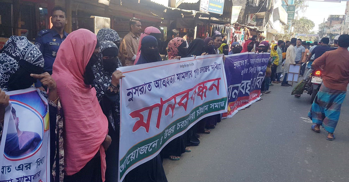 প্রসঙ্গত, ২০১৯ সালের ২৭ মার্চ সোনাগাজী ইসলামিয়া সিনিয়র ফাজিল মাদরাসার আলিম পরীক্ষার্থী নুসরাত জাহানকে যৌন নিপীড়নের দায়ে মাদরাসার অধ্যক্ষ সিরাজ উদ দৌলাকে গ্রেপ্তার করে পুলিশ। ৬ এপ্রিল ওই মাদরাসা কেন্দ্রের সাইক্লোন শেল্টারের ছাদে নিয়ে অধ্যক্ষের সহযোগীরা নুসরাতের শরীরে আগুন ধরিয়ে দেন। ১০ এপ্রিল রাতে ঢাকা মেডিকেল কলেজ হাসপাতালের বার্ন ইউনিটে মারা যান নুসরাত জাহান।