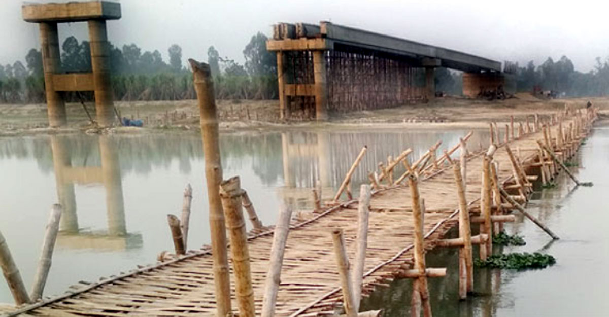 ৪ বছরেও শেষ হয়নি সেতু নির্মাণ, স্থানীয়রাই তৈরি করছে বাঁশের সাঁকো
