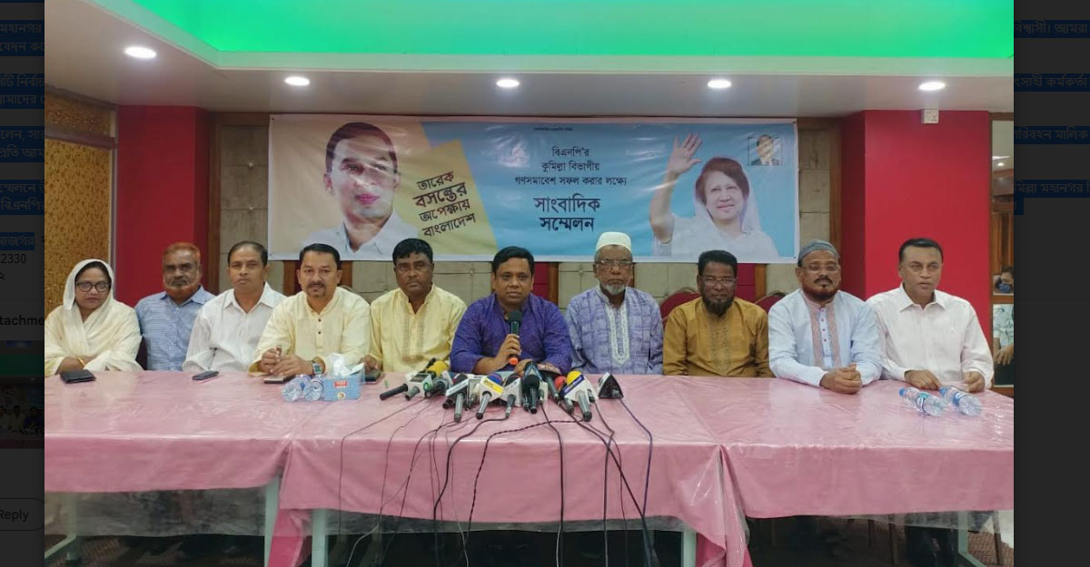 কুমিল্লা সিটি নির্বাচনে মেয়র পদে প্রতিদ্বন্দ্বিতা করা নিজাম উদ্দিন কায়সার বলেন, ‘বিএনপির ভারপ্রাপ্ত চেয়ারম্যান তারেক রহমানের নেতৃত্বে দেশে আজ আন্দোলনের নতুন বসন্ত দেখা দিয়েছে। প্রশাসনের একদল অতি উৎসাহী কর্মকর্তা আমাদের নেতা-কর্মীদের হয়রানি করছেন। ১৭ নম্বর ওয়ার্ডে আমাদের স্বেচ্ছাসেবক দল নেতাদের ঘরে পুলিশ গিয়ে ওই নেতাকে না পেয়ে তার ছোটভাইকে গ্রেপ্তার করেছে। আমরা এসব হয়রানির তীব্র নিন্দা জানাই।