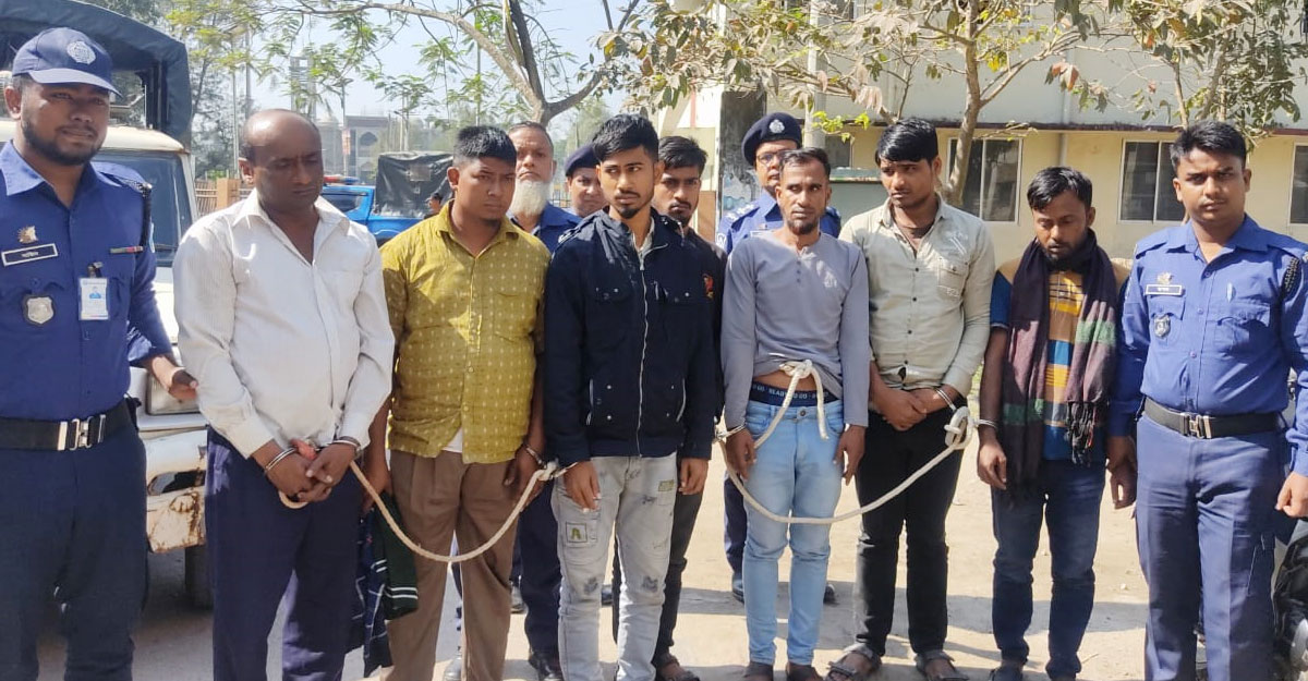 গ্রেপ্তারকৃতরা হলেন- লক্ষ্মীপুরের রায়পুর উপজেলার কাঞ্চনপুর গ্রামের ছানা উল্যার ছেলে খোরশেদ আলম টিপু (৩৭), ফেনীর সোনাগাজী উপজেলার চরচান্দিয়ার মহিষচর গ্রামের নূর নবীর ছেলে নূর কাশেম মোহন (২৬), ভোলার তজুমুদ্দিনের দক্ষিণ চাচড়া গ্রামের সোলো মাঝির ছেলে ইউছুফ (৩৫), নোয়াখালীর সুবর্ণচর উপজেলার গিয়াস উদ্দিনের ছেলে ফারুক (৪০), বেগমগঞ্জের ছয়ানী ইউনিয়রে বড় মেহেদীপুর গ্রামের আবদুস সোবহানের ছেলে মুরাদ হোসেন (২৫), সদর উপজেলার দাউদপুর গ্রামের মনশাদ হানিফের ছেলে রুবেল (২৬) ও সেনবাগের গাজীরহাট গ্রামের সেলিম উদ্দিনের ছেলে নূর ইসলাম (৩৫)