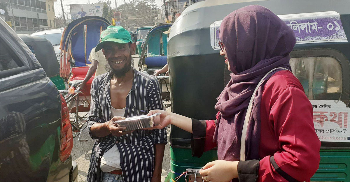 নারী উদ্যোক্তা চৌধুরী জান্নাত রাখি। তিনি হোম কিচেন ও অনলাইনে কাপড়ের ব্যবসা করেন। সেই ব্যবসা থেকে যে লাভ আসে, তার পুরোটাই নিজে খাবার তৈরি করে বিলিয়ে দেন সুবিধাবঞ্চিতদের। প্রতি মাসের মতো মঙ্গলবার দুপুরেও তিনি খাবার নিয়ে সিলেট নগরের সড়কে সড়কে ঘুরে বেড়ান। সুবিধাবঞ্চিত যাকেই সামনে পান, তাদের মধ্যেই খাবার বিলিয়ে দেন।