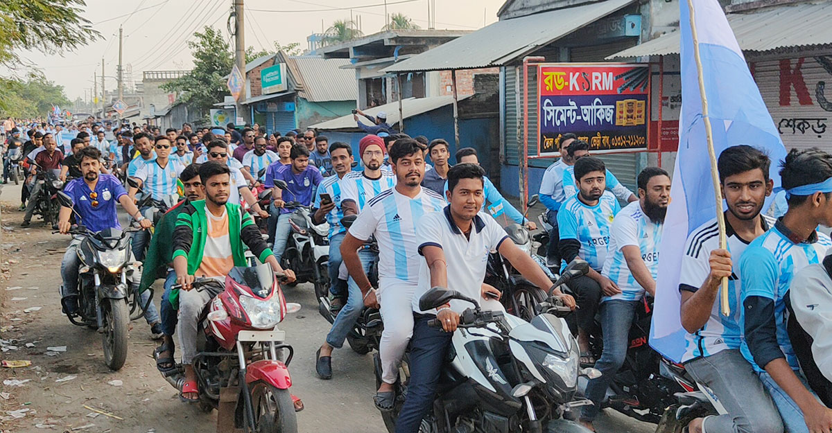 বাগেরহাটে নেচে-গেয়ে আর্জেন্টাইন দলকে সমর্থকদের শুভেচ্ছা