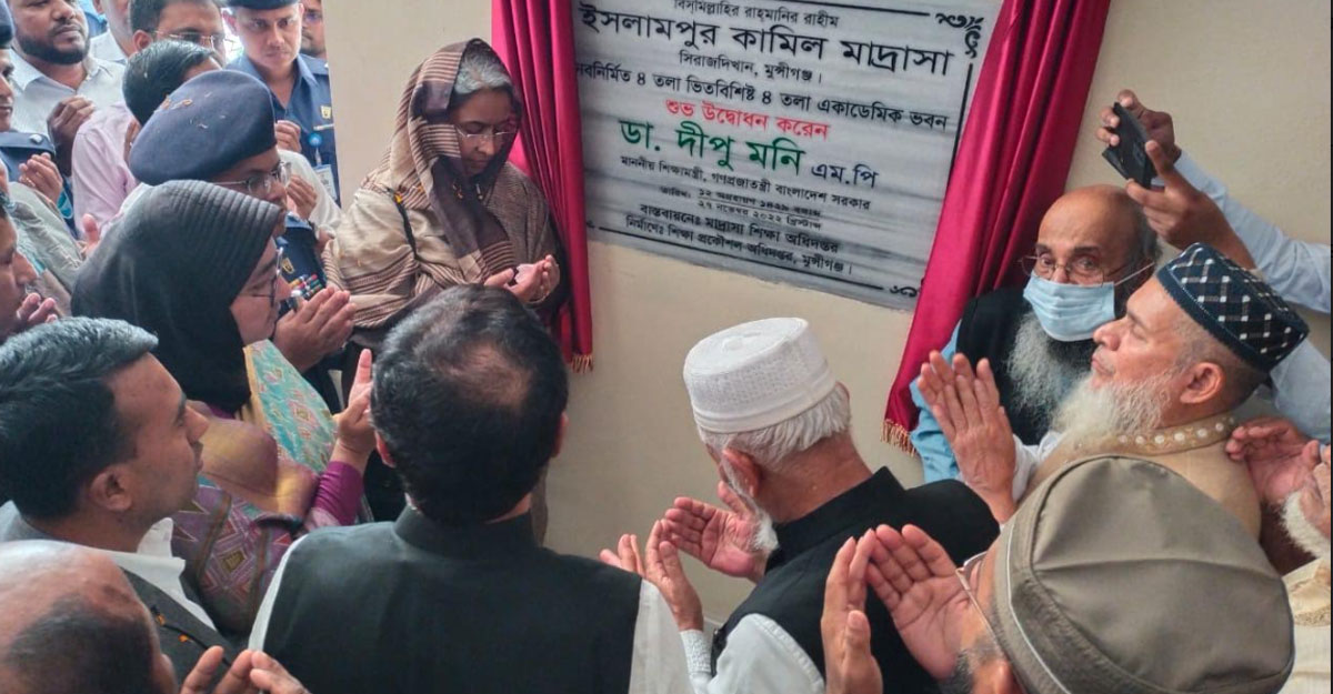 এর আগে সকাল সাড়ে ৯টার দিকে উপজেলার কুচিয়ামোড়া গ্রামের ইসলামপুর কামিল মাদরাসার নব-নির্মিত চারতলা একাডেমিক ভবন উদ্বোধন করেন। এ সময় উপস্থিত ছিলেন মুন্সীগঞ্জ জেলা প্রশাসক কাজী নাহিদ রসুল, পুলিশ সুপার মোহাম্মদ মাহফুজুর রহমান আল-মামুন, জেলা আওয়ামী লীগের সাধারণ সম্পাদক শেখ লুৎফর রহমান, সিরাজদিখান উপজেলা পরিষদ চেয়ারম্যান মহিউদ্দিন আহমেদ, উপজেলা নির্বাহী কর্মকর্তা মো. শরীফুল আলম তানভীর, উপজেলা সহকারি কমিশনার (ভূমি) তাসনিম আক্তার প্রমুখ।