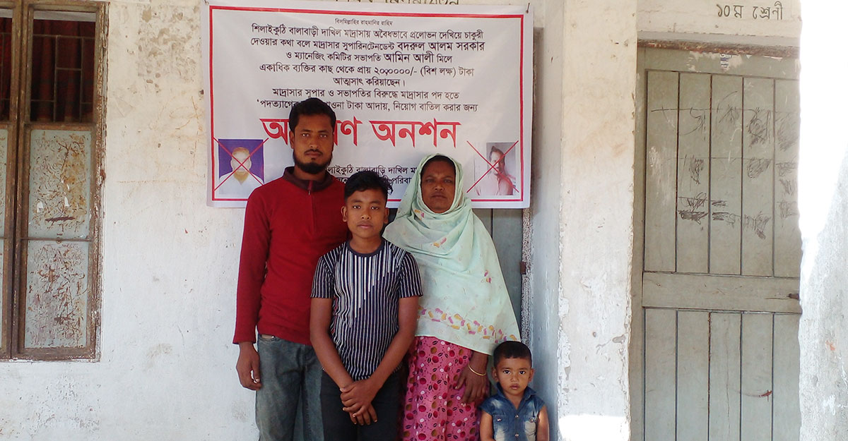 মাদরাসায় নিয়োগ না পেয়ে পরিবারসহ অনশনে নেমেছেন চাকরিপ্রার্থী