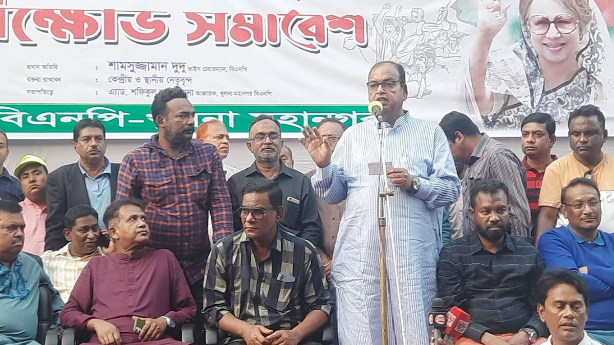 বুধবার (৩০ নভেম্বর) বিকেলে নগরীর কেডি ঘোষ রোডের বিএনপি কার্যালয়ের সামনে অনুষ্ঠিত বিক্ষোভ সমাবেশে প্রধান অতিথির বক্তৃতায় তিনি একথা বলেন। পুলিশের মামলা, নির্যাতন ও গ্রেপ্তারের অভিযোগ তুলে কেন্দ্র ঘোষিত কর্মসূচির অংশ হিসেবে খুলনা মহানগর বিএনপি এই সমাবেশের আয়োজন করে।