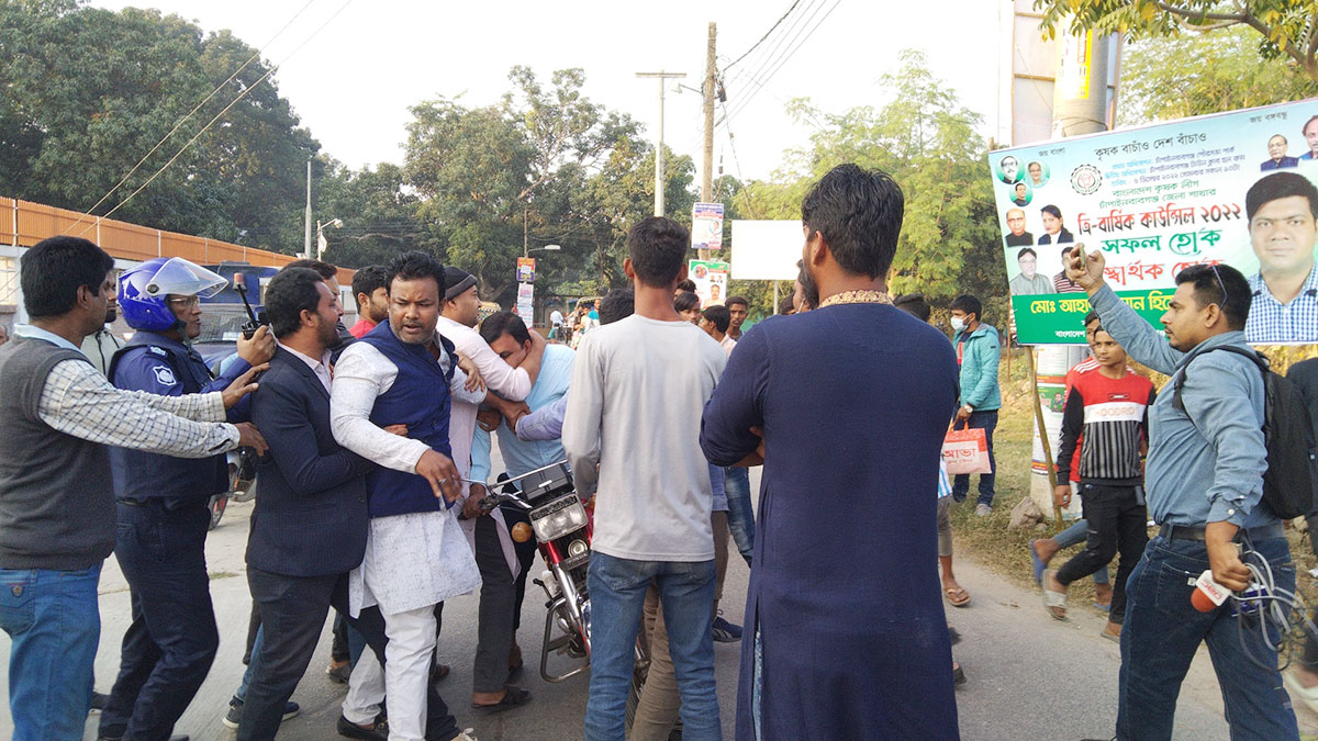 চাঁপাইনবাবগঞ্জে কেন্দ্রীয় নেতাদের নির্দেশে জীবন বৃত্তান্ত জমা, মনোনয়ন যাচাই-বাছাই কার্যক্রমে অংশ নিতে সার্কিট হাউসে আসার পথে জেলা কৃষক লীগের সাধারণ সম্পাদক এক প্রার্থীকে বেধড়ক মারধর করেছে অন্য প্রার্থীর লোকজন।