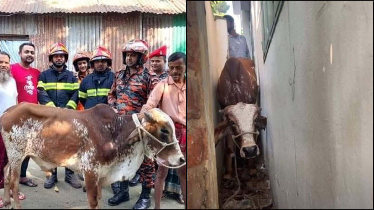 এলাকাবাসী ও ফায়ার সার্ভিস সূত্রে জানা গেছে, ব্রাহ্মণবাড়িয়া পৌর এলাকার মুন্সেফপাড়ার বাসিন্দা কেন্দ্রীয় ছাত্রলীগের সাবেক সদস্য ও ঢাকা মহানগর উত্তর ছাত্রলীগের সাবেক সহ-সভাপতি রিদওয়ান আনসারি রিমোর দুটি গরু সকালে তাদের বাড়ির পেছনে ছেড়ে দেওয়া হয়। এরই মধ্যে গরুটি হারিয়ে যায়। পরে গরুর মালিক শহরের বিভিন্ন জায়গায় গরু খোঁজাখুঁজি শুরু করেন। এক পর্যায়ে জানা যায় একটি গরু বাগানবাড়ি এলাকায় রাসেল আহমেদের বাড়ির ভবন ও সীমানা দেওয়ালের মাঝে আটকে আছে। পরে জাতীয় জরুরি সেবা নম্বর ৯৯৯-এ কল করা হলে ফায়ার সার্ভিসের সদস্যরা এসে দেয়াল ভেঙে অক্ষত অবস্থায় গরুটি উদ্ধার করে।
