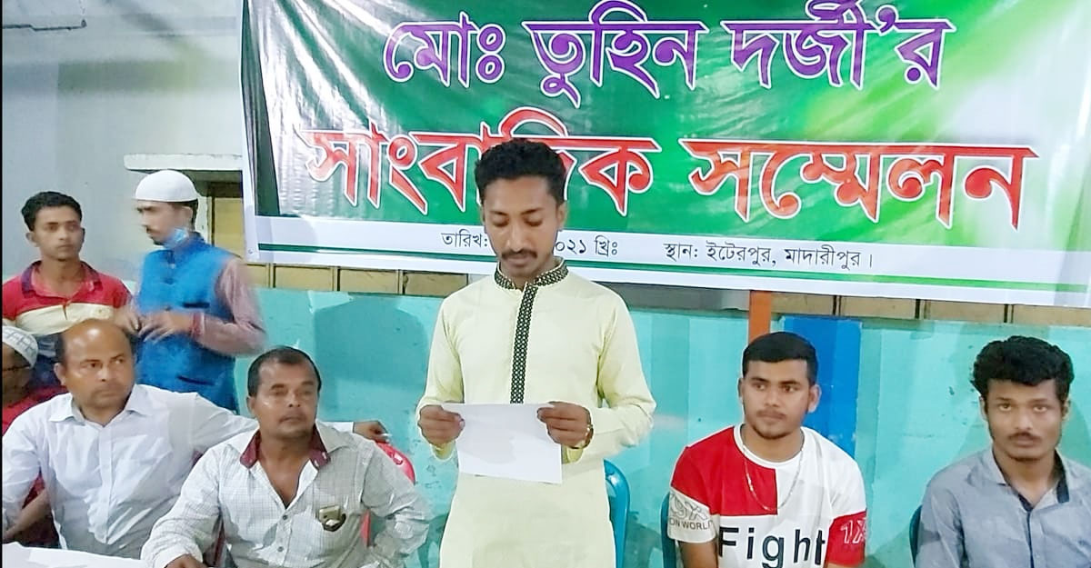 সংবাদ সম্মেলনে কথা বলছেন মাদারীপুর জেলা ছাত্রলীগের সাবেক সহসভাপতি তুহিন দর্জি