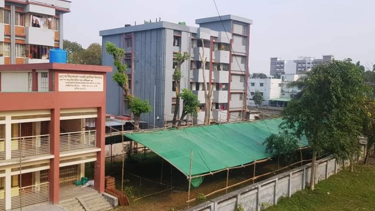 পরীক্ষা চলাকালীন বিদ্যালয় মাঠে চলছে অনুষ্ঠানের আয়োজন