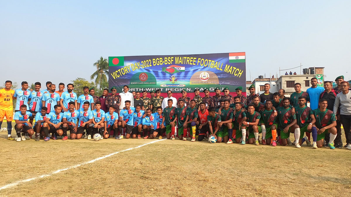 বিজিবি-বিএসএফের মধ্যে পারস্পরিক আস্থা ও সম্পর্ক আরও সুদৃঢ় করার লক্ষ্যে জয়পুরহাট জেলা স্টেডিয়ামে মৈত্রী ফুটবল ম্যাচ অনুষ্ঠিত হয়েছে। বর্ডার গার্ড বাংলাদেশের (বিজিবি) আমন্ত্রণে ভারতীয় সীমান্তরক্ষী বাহিনীর (বিএসএফ) সদস্যরা সেখানে এসেছিলেন।