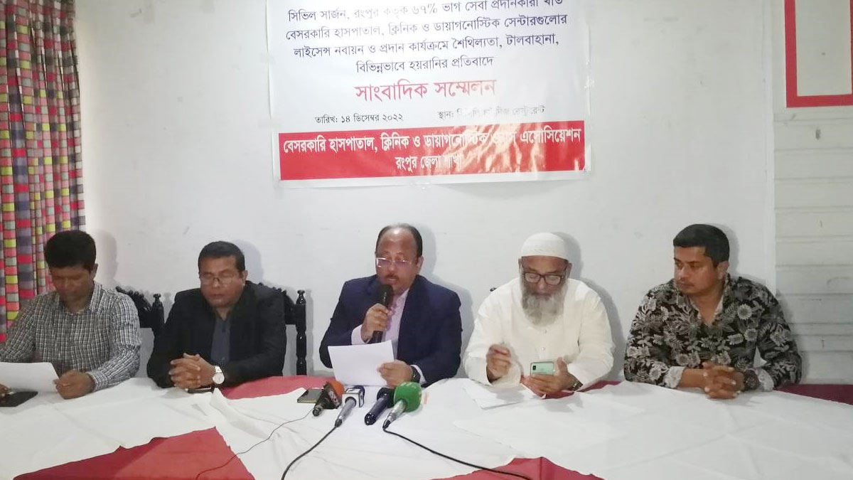বুধবার (১৪ ডিসেম্বর) দুপুরে রংপুর নগরীর একটি হোটেলে সংবাদ সম্মেলন করে সিভিল সার্জনের বিরুদ্ধে এ অভিযোগ করে বাংলাদেশ বেসরকারি হসপিটাল, ক্লিনিক ও ডায়াগনস্টিক ওনার্স অ্যাসোসিয়েশন নামে একটি সংগঠন।