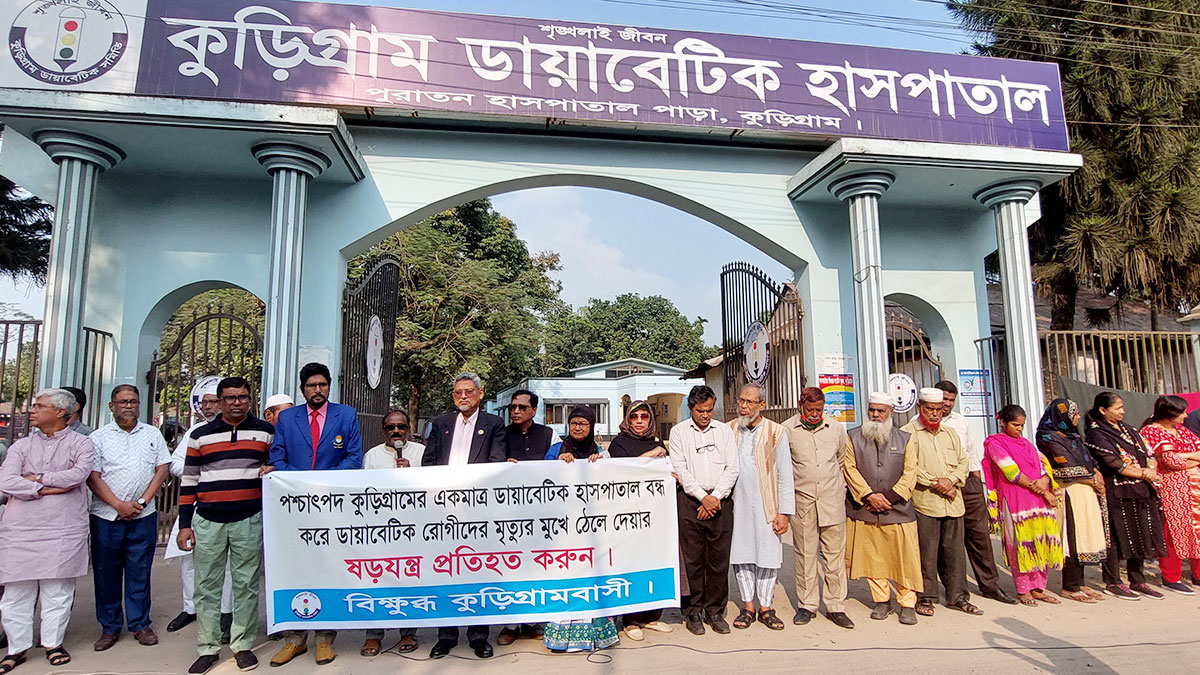 কুড়িগ্রাম ডায়াবেটিক হাসপাতাল বন্ধের চক্রান্ত রুখতে মানববন্ধন