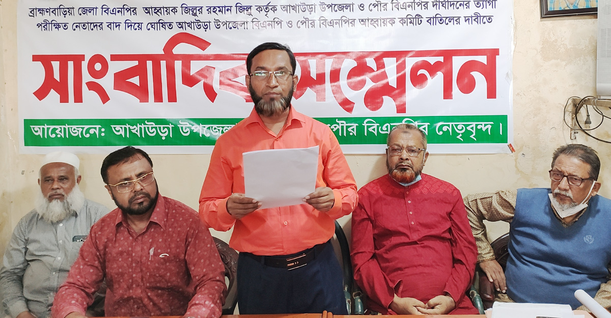 মঙ্গলবার (৯ মার্চ) বেলা সাড়ে ১১টায় আখাউড়া উপজেলা বিএনপির কার্যালয়ে সংবাদ সম্মেলনে এ অভিযোগ করেন উপজেলা ও পৌর বিএনপির আহ্বায়ক কমিটিতে পদ না পাওয়া নেতারা।
