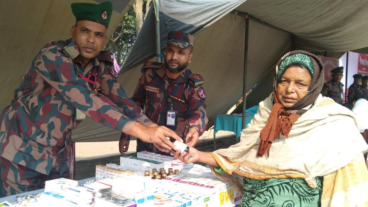 বিজয় দিবসে বিজিবির বিনামূল্যে চিকিৎসা সেবা ও শীতবস্ত্র বিতরণ