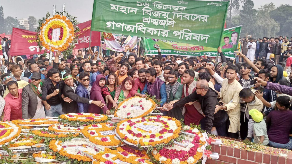 মহান বিজয় দিবস উপলক্ষে জাতীয় স্মৃতিসৌধে শ্রদ্ধা নিবেদন শেষে গণ অধিকার পরিষদের সদস্য সচিব নুরুল হক নুর বলেছেন, ৫১ বছরে আমাদের অর্জন শুধুই একটি স্বাধীন ভূখন্ড। গণতন্ত্র, স্বাধীন বিচার বিভাগ, বিচার ব্যবস্থা আমরা এখনো পাইনি। আজকে এজন্যই তরুণদের যে স্লোগান সেটিই আমাদের স্লোগান, ‘মুক্তিযুদ্ধের অঙ্গীকার, দেশ হবে জনতার’।