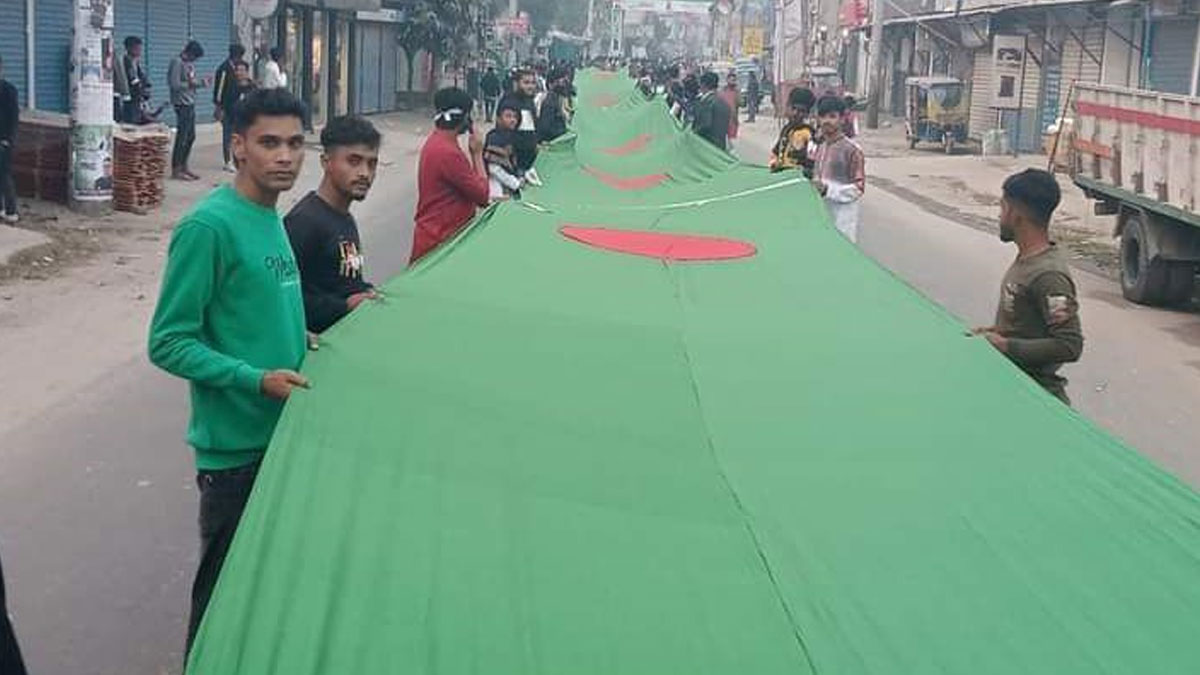 শরীয়তপুরে ২ কিলোমিটার জাতীয় পতাকা নিয়ে র্যালি